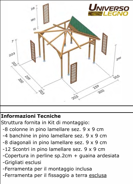 Gazebo mod. MILANO copertura LEGNO + GUAINA ARDESIATA